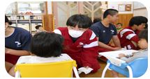 日に、はまゆり子ども園を訪問し、幼児とのかかわり方を学びました。一緒に体を動かしたり、絵本を読んだりして楽しくふれ合うことができました。