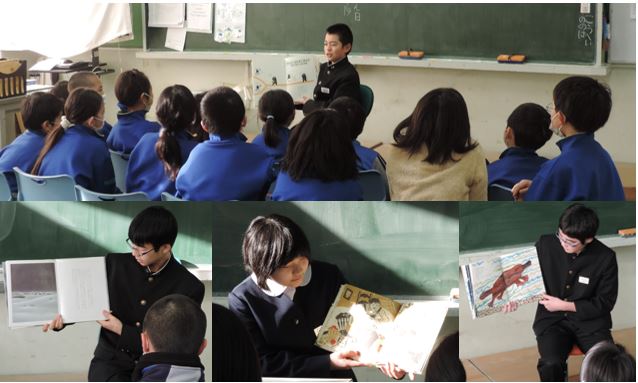 1月31日(木)、中学校の図書委員による普代小学校の児童への「読み聞かせ会」が行われました。2回目となった今回は2年生・4年生・5年生・6年生の4学年で行われました。