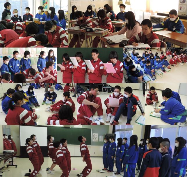 中学校の授業を参観し、先輩である小中一貫校の7年生(中1)がこの1年間の自分たちの体験から、中学校生活について説明を行いました。最後に「アフリカン」で6年生にエールを送り、自分達も4月から「先輩」になるのだという自覚を新たにしました。
