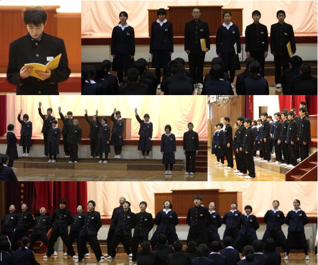 3年生は、2学期のあゆみと今後の決意を「合唱と復唱」で表現してくれました。