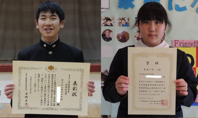 宮古人権擁護委員協議会長賞(2年連続で普代中が受賞)2年:F・Mさん